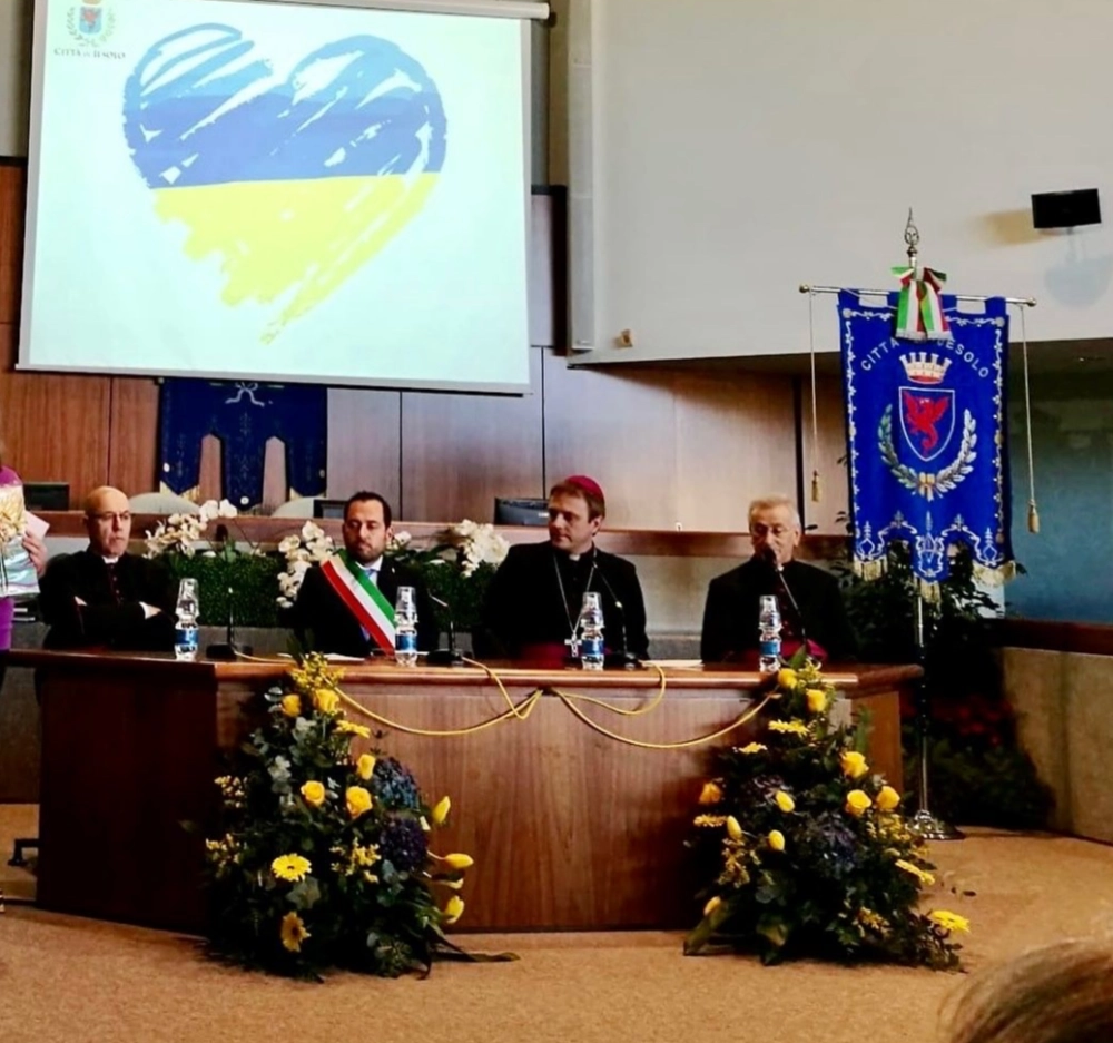 In occasione della visita a Jesolo del Vescovo Aulisiare di Kiev, il 7 dicembre 2022, gli alunni e le alunni hanno preparato un dono speciale: un messaggio di luce e speranza. L'incontro ufficiale, avvenuto sala del Consiglio Comunale alla presenza delle autorità civili, militari e religiose della Città, delle associazioni di categoria e della rappresentanza dei compagni delle scuole D'Annunzio e Cornaro, ha visto l'intervento del CCR, la consegna di una tela realizzata da un gruppo di studenti della Michelangelo e la lettura di pensieri e poesie ispirate a questo particolare incontro. E' stato un momento di riflessione importante per i nostri alunni: luce, pace, aiuto, dono, gratitudine, speranza, fratellanza, cultura sono alcune delle parole sulle quali si sono soffermati il vescovo Alessandro, il Sindaco e il Presidente del Consiglio Comunale di Jesolo; ma anche un'occasione per gli adulti di ascoltare ciò che i ragazzi e le ragazze pensano, credono e sperano per il loro futuro.